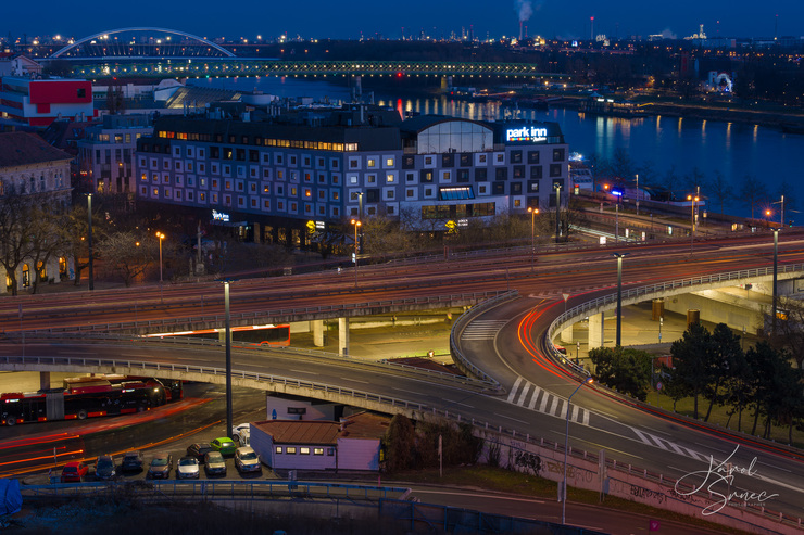 Nedávno som dotestoval Sony A7 V, skvelý fotoaparát, jeden z najlepších na trhu. Už som sa pevne rozhodol, že si ho kúpim. Dôkladne som ho preveril pri fotografovaní divadelného predstavenia a dvoch koncertov. Je to však univerzálny fotoaparát. Nielen, že je rýchly, ale má jeden z najväčších dynamických rozsahov vôbec, porovnateľný so stredoformátovými fotoaparátmi. A to využijete napr. pri fotografovaní nočného mesta. Národnú banku som fotografoval s objektívom Sigma 24-70/2,8 DG DN II Art, na hradby som si zobral Sigmu a k nej aj telezoom FE 100-400/4,5-5,6 GM OSS.