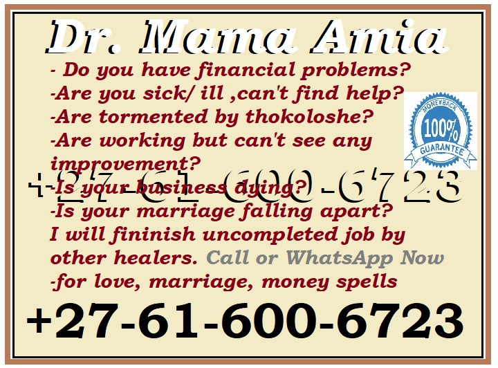 IN LONDONDERRY, ABU DHABI, ••• +2761-600-6723••• Spiritual Healer, Lost Love Spells & Psychic Love Spells Caster – Mama Amia Sangoma | Traditional Healer | Herbalist | Diviner in RAS AL KHAIMAH, VOSLOORUS Tue Feb 10 2026 19:40:33 GMT+0200 (South Africa Standard Time) Trusted Spiritual Healer & Lost Love Spells Specialist Mama Amia is a respected spiritual healer, lost love spells caster, and psychic love spells expert, known for deep ancestral wisdom and powerful spiritual guidance. As a trained sangoma, traditional healer, herbalist, and diviner, she is spiritually called to help individuals suffering from love loss, emotional pain, relationship problems, and spiritual blockages. Guided by ancestral spirits and intuitive insight, Mama Amia performs sacred lost love spells, relationship healing rituals, and accurate psychic readings to reconnect hearts, restore balance, and realign broken destinies. Lost Love Spells & Relationship Healing Mama Amia works with deep spiritual energies to: Bring back lost love or an ex-partner Heal broken marriages and relationships Fix love problems and emotional separation Remove negative spiritual influences Restore communication, trust, and harmony Her psychic love spells are performed with compassion, patience, and respect for spiritual laws. Every case is handled personally and confidentially. A Sangoma for Love, Marriage & Life Challenges Mama Amia is a sangoma who helps fix marriage, love, relationships, and divorce-related challenges. She guides clients on a path toward serenity, happiness, and spiritual protection, including counteracting witchcraft and negative forces. If your heart feels heavy or your path feels blocked, spiritual guidance and healing are available to help you find clarity, peace, and renewed hope. Are You Experiencing Any of These Problems? Relationship or marriage problems Lost love or emotional pain Bad luck or repeated failures Unexplained illness or spiritual disturbances Disconnection from ancestors or bad dreams Need spiritual protection, business luck, or fertility support Look no further. Mama Amia is a highly respected traditional healer and sangoma ready to help YOU. International Online Spiritual Healer Mama Amia is among the most experienced and influential online spiritual healers and spell casters, serving clients worldwide, including: South Africa, United States, United Kingdom, United Arab Emirates, Canada, Ireland, Germany, Switzerland, Scotland, Australia, New Zealand, Hong Kong, Philippines, Saudi Arabia, Mauritius, Seychelles, and more. Distance is never a barrier—spiritual energy knows no borders. Psychic Readings & Ancestral Spiritual Powers Services include: Psychic readings (past, present & future) Hand palm readings Ancestral spiritual guidance Permanent spiritual solutions to life problems Mama Amia’s work is safe, secret, confidential, and spiritually guided, helping clients live the life they love with confidence and peace. Spiritual Healing Services Offered Healing emotional, mental, and physical ailments Protection from witchcraft, curses, and bad luck Cleansing of homes, businesses, and individuals Love and relationship healing Fertility and family blessings Business success & career breakthroughs Authentic traditional medicine 📞 Call or WhatsApp Today: +27 616 006 723 Spiritual Healer | Lost Love Spells | Psychic Love Spells Caster – Mama Amia Restore love, protect your spirit, and reclaim your happiness.