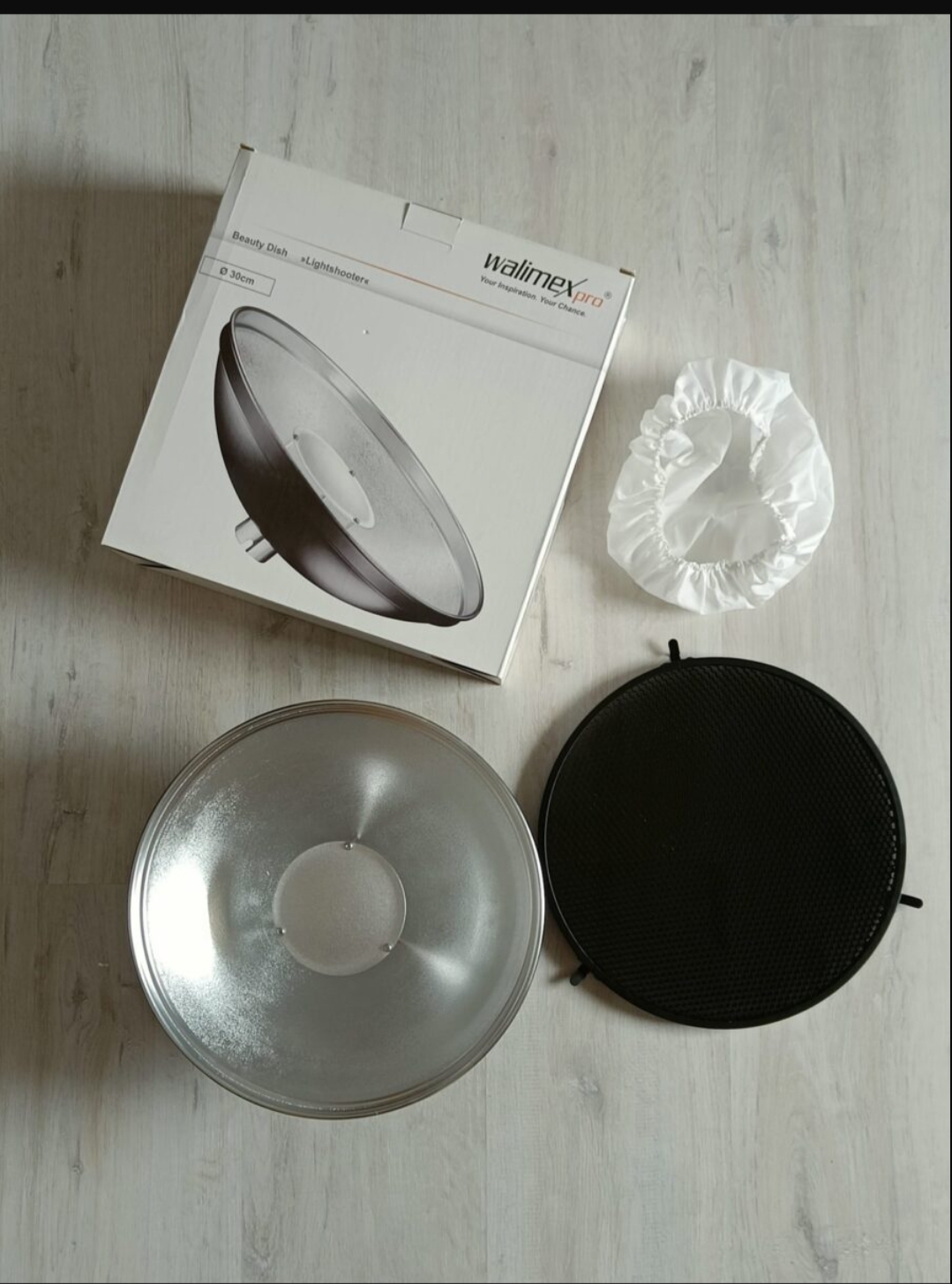 - beauty dish 30cm + honeycomb + difúzer: €49