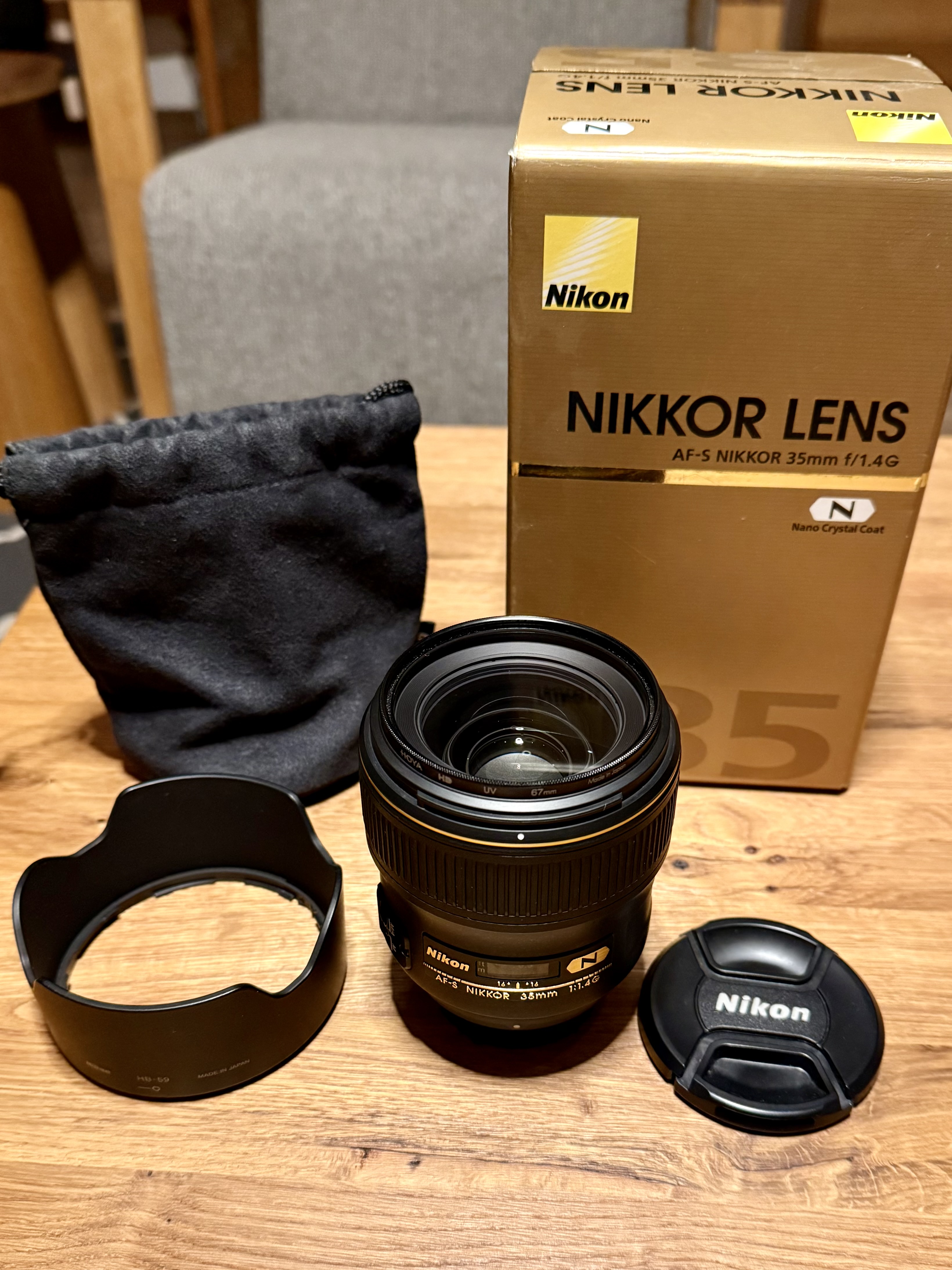 Kompletné balenie: krabica, originál púzdro, slnečná clona. Som prvý majiteľ, od začiatku používané s UV filtrom. Odporúčam vidieť.