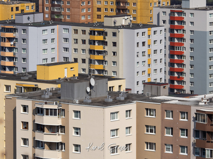 Samozrejme som fotografoval prevažne jarnú flóru, ale aby sme tu nemali opäť len kvety, vybral som pár fotografií iného žánru. Zo Sandbergu je parádny výhľad na Devínsku Novú Ves. Mal som so sebou teleobjektív a mohol som tak fotografovať urbanistické detaily. Zaujala ma hra tvarov, farieb, štruktúra okien.