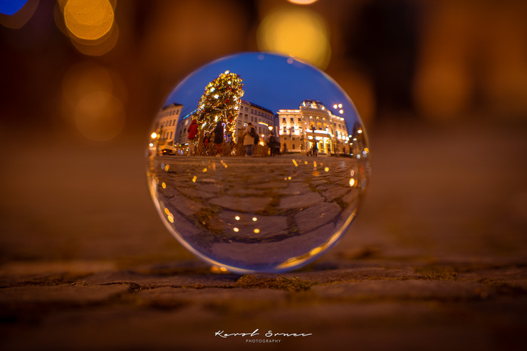 Môj lensball je značky Rollei a v priemere má poctivých 9 cm. V natiahnutej ruke za chvíľu pocítite jeho váhu. Kvôli svetelnosti a bokehu som si zobral Olympus M.Zuiko 45/1,2 PRO. Vedel som, že budem fotografovať potme a z ruky. Hneď na začiatku som urobil chybu, nepozrel som si vlastný článok alebo aspoň fotky z archívu. Zistil som, že kvôli tomu, aby som dostal lensball do záberu a navyše mohol aj zaostriť, som musel maximálne naťahovať ruku, čo bolo vysiľujúce. Nabudúce si zoberiem Olympus M.Zuiko 25/1,2 PRO alebo Olympus M.Zuiko 12-40/2,8 PRO.