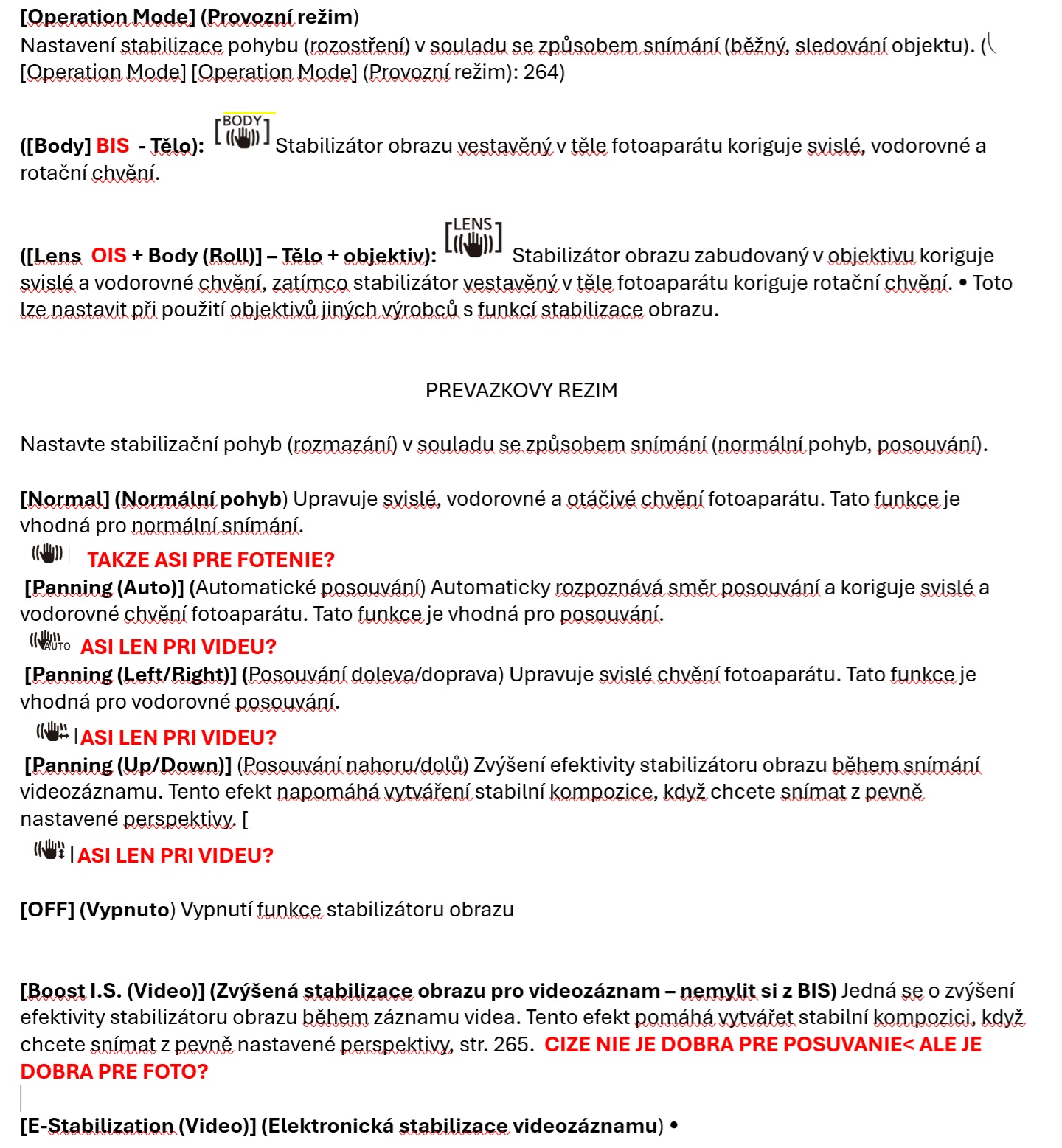Ahoj, chcem sa opytat, mam trochu mišmaš s typmi stabilizacii u S5II. Aby bolo vidiet ikony, tak davam taky moj "vycuc". CO sa tyka videa, tam to mam jasne - elektronicka stabilizacia v 2 stupnoch a zvysena BOOST- ta nie je dobra ked panoramujem, lebo obcas to ostane na mieste a potom dost trhne.