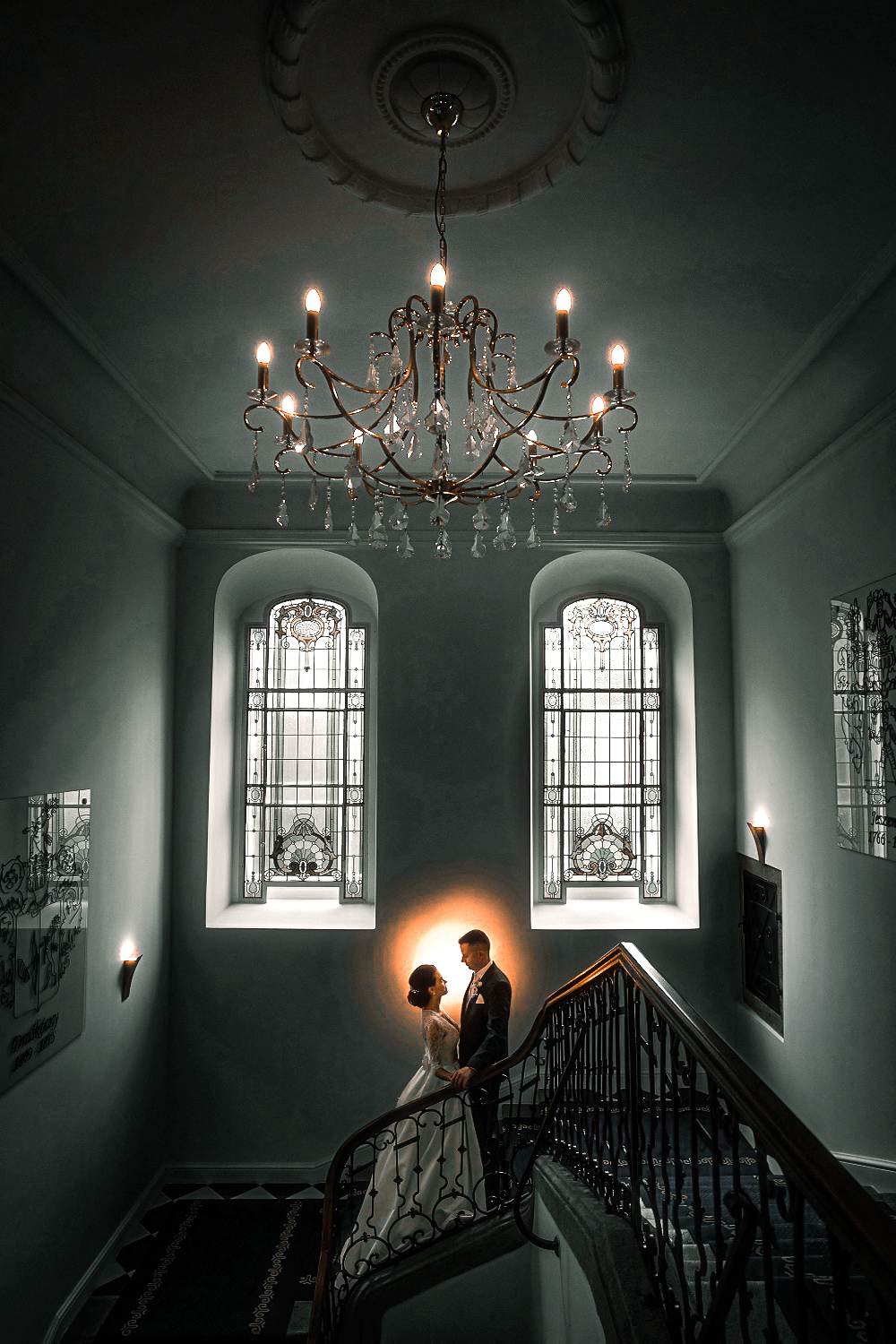 a keby si chcel byť veľmi náročný (a chcel by si toto foto tlačiť na veľký rozmer), potom by si možno tiež zvažoval, že ten luster je osovo asymetrický a že nevesta mala stáť o stupienok vyššie ako ženích (feministky by to viac lajkovali ).