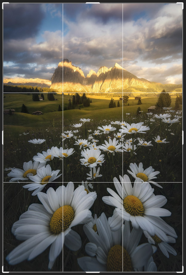 ...ty kopretiny focené takhle zblízka částečně ruší celkový dojem z pohoří Dolomit...můj dojem
