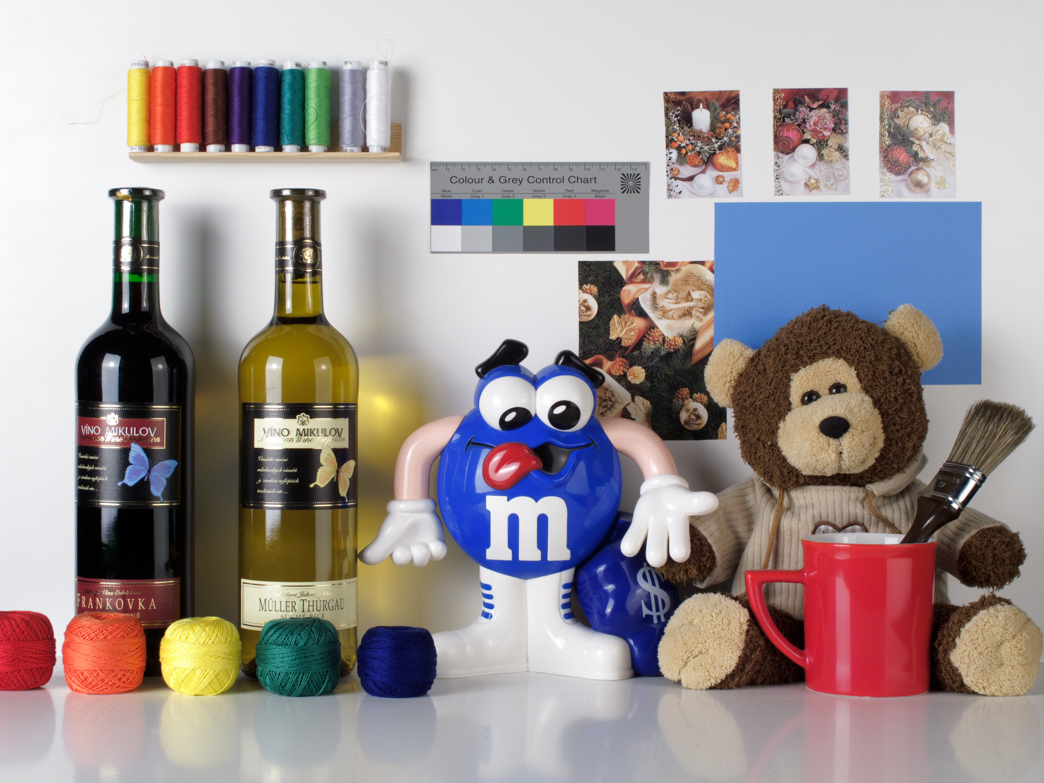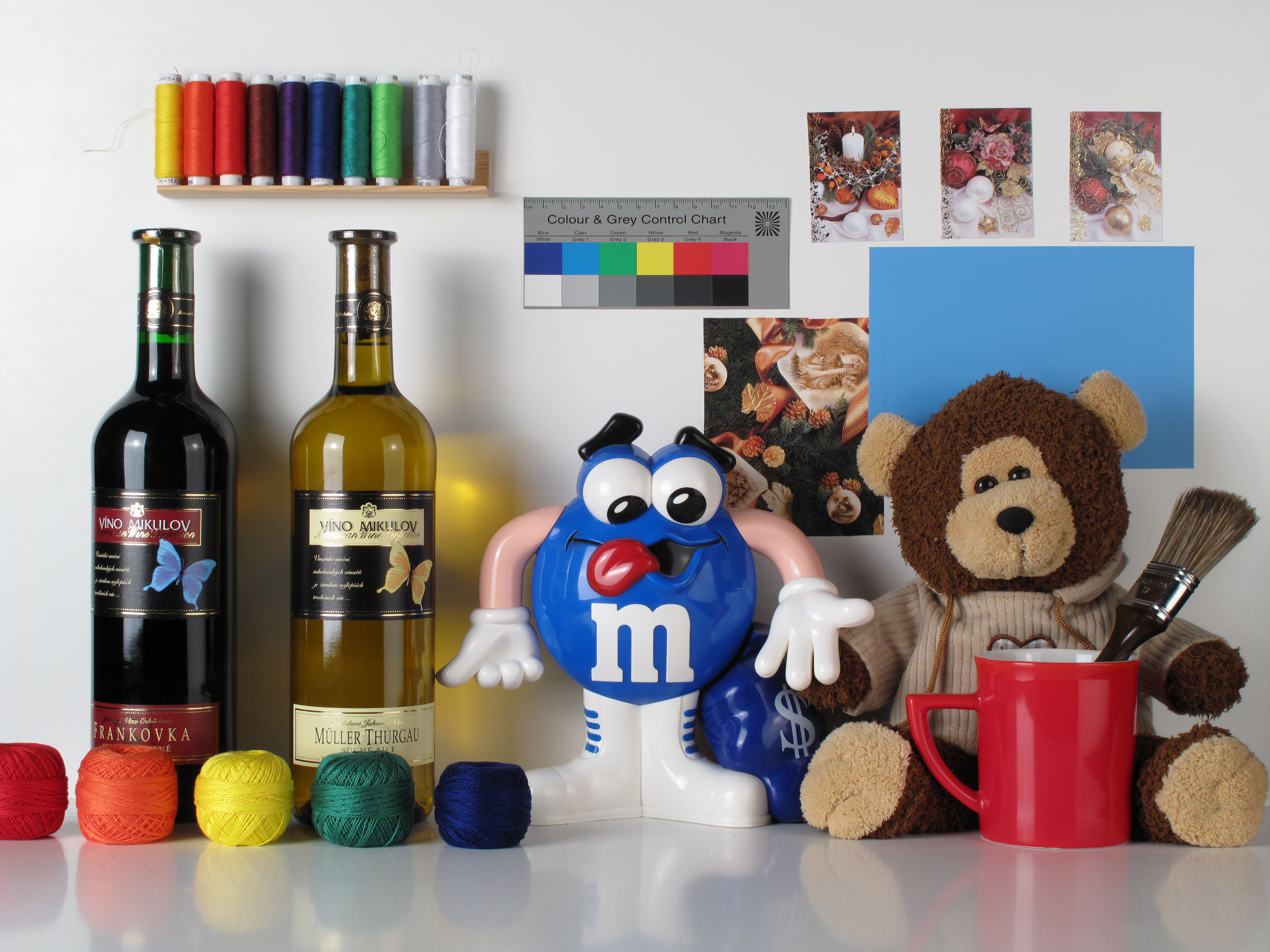 Pre zaujímavosť uvádzam výstup z JPG súboru od najbližšej konkurencie. Pri trochu pozornejšom pozorovaní je vidieť, o koľko lepší je algoritmus Canonu, ktorý je oveľa šetrnejší k jemným detailom. Zvlášť je to vidieť na textúre oblečenia plyšovej hračky a tiež na vianočnej pohľadnici s ihličím. V hladkých plochách s jednoduchými krivkami rozdiel nie je taký zreteľný.