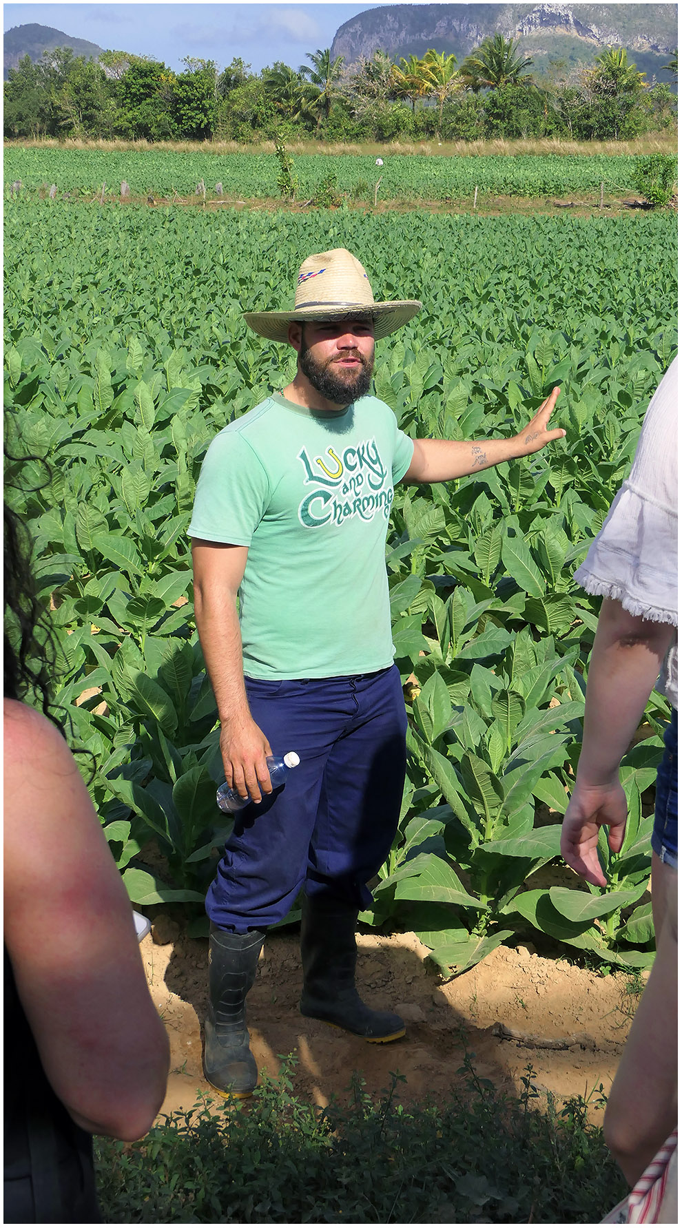 Farmár vysvetluje pestovanie tabaku - vo flaške má semiačka tabáku veľké ako mak. Tabak sa tu pestuje celoročne a zber začína keď dosiahne výšku 70cm až 1 m. Tabak z tejto oblasti je top na svete a všetky naj cigary sú z jeho vrchných listov.