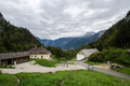"Prvý pohľad na Hallstat (v pozadí) po priechode horským priesmykom"