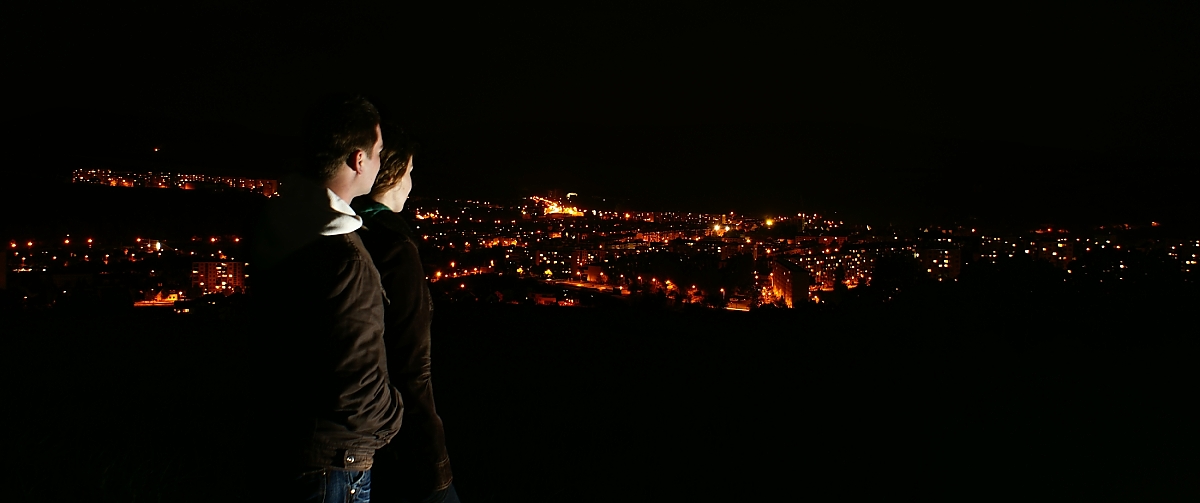 Nový most a 8-mička; nová Eurovea; šero nad hotelom Carlton